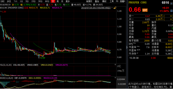 如果港股中有这么一支股票prosper cons(06816),起了个看不太明白的英文名,市值又仅有5亿,每天成交量低的可怜,甚至出现0成交的情况,那么多半已经被挂上半个老千股的形象。毕竟在港股市场里打着“洋名”招摇撞骗的案例太多,投资者往往本着宁可错杀也不放过的态度,而不愿去参与这样的股票。
