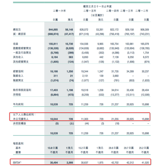 尽管收益略微增长,但DYNAM JAPAN的利润仍旧延续前两个财年下滑的趋势。其中,公司拥有人应占利润93.6亿元,同比下滑11.2%;EBITDA为284.7亿,同比下滑6.6%。