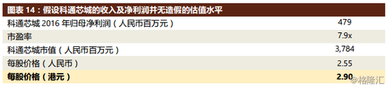 根据我们上述确实的证据,科通芯城的在线业务是显而易见地不存在的。商业模式的不同无可避免地将引致估值水平的重大差异。当科通芯城凭着连年自我包装为”线上分销商”而享受着高估值的同时,传统的线下分销商并不能享有如此高的估值水平。时捷集团目前经调整后 2016 年市盈率仅为约 7.9 倍。即使你相信科通芯城的收入及净利润并无造假(当然我们并不相信),科通芯城每股也只价值 2.90 港元,与停牌前股价每股 7.80 港元尚有至少 63%的下跌空间。
