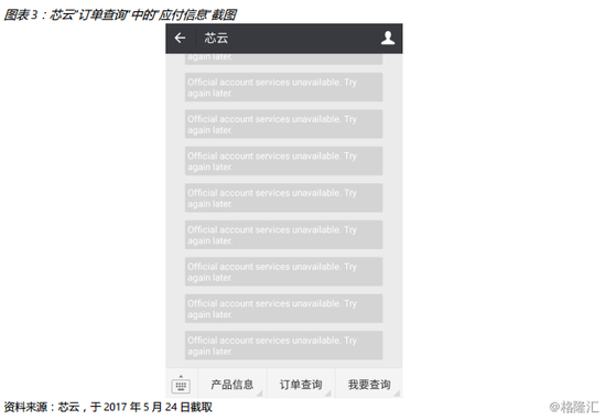 我们希望管理层充分解释芯云如何在流量仅及云汉芯城一个没有下单功能的微信账号六分之一的情况下仍产生公司绝大部分的收入。我们亦希望管理层能解释芯云近 4 个月的时间没有发布任何新消息的原因。