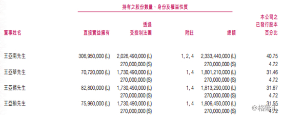 Landmark Worldwide持有公司31%的股权,而Landmark Worldwide为兄弟四人每人25%,王亚南先生持有另外的2.9亿股。大家的购股权也都是数量一致,最重要的是管理层从未减持过。