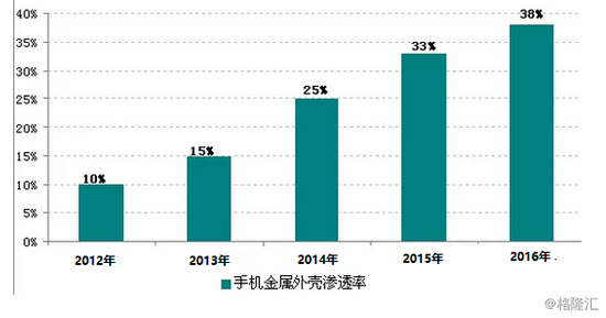 除了客户的市场份额大幅提升外,金属机壳的市场渗透率快速增长也是重要原因之一。2015年金属手机外壳的渗透率是33%,2016年上升到了38%。