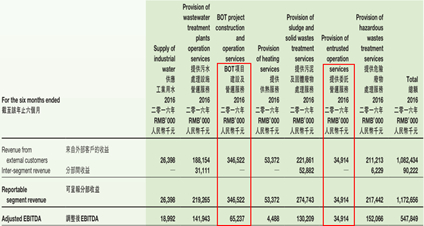 智通财经继续翻看中滔环保2016年年报,分析营收和净利润异常变化的原因。首先是有两块业务的全年收入低于半年收入,对比公司2016年半年报和年报可以发现,项目建设半年营收是3.465亿元人民币(下同),而全年营收只有3.336亿元;同样的提供委托运营服务半年营收有近3500万元,全年营收只有860万元。