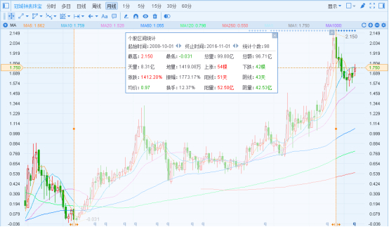 把“钟表”和“珠宝”写进公司名字的冠城钟表珠宝,也表明公司的主要发展方向,经过韩国龙多年的收购和并购,该公司的钟表业务市场不断扩大,在业绩也明显的贡献,股价整体上涨,尤其在2008年10月至2016年10月这8年期间,累计升幅为1412%,转身成为“tenbagger”牛股。