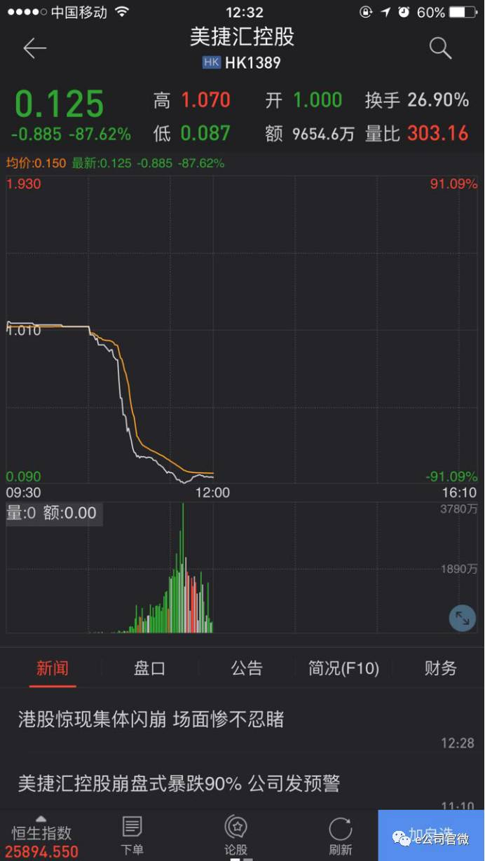 26只港股刚刚集体闪崩 有3只暴跌90%