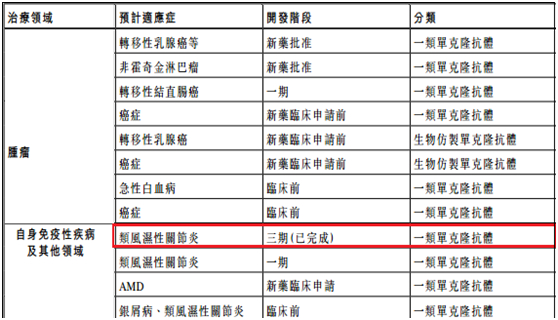 而研发方面,2016财年,三生制药有24种在研产品中,15种作为中国国家一类新药开发。拥有10项肿瘤科在研产品,包括八项单克隆抗体在研产品(占在研产品的主流),其中,治疗类风湿性关节炎的预充式注射剂已经完成三期。另外一个治疗寻常性痤疮的三类化学药也处在三期阶段。