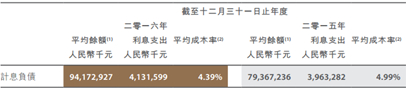 金融及咨询业务毛利率由2015年的62.96%提高至2016年的65.45%,提升主要的原因是因为计息负债的平均成本比收益下降得更多。