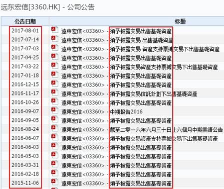 资产出售是为提前确定收益,从而加快资产整体流转量。2017年8月1日,远东宏信发布公告称,以近34亿元的价格出售两处基础资产,预计完成后将实现69万元的净收益。