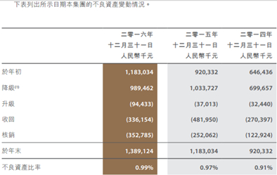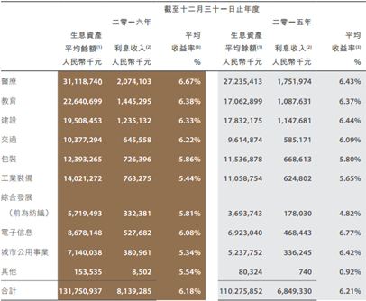可以看到,2016年净利息差为1.79%,大幅提高0.57个百分点,其中生息资产的平均收益率下降3个基点,而平均成本则大幅下降60个基点。
