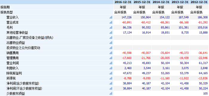 智通财经APP获得的资料显示,2014年至2016年,该集团的收益分别为15.41亿、15.10亿以及14.72亿;净利润分别为4.21亿、4.02亿以及3.89亿元。