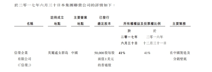 2016年2月,优源子公司希源BVI完成收购信荣企业有限公司41.0%的股权。信荣及其子公司主要以自有品牌壁纸及OEM形式在中国从事壁纸的制造及分销。