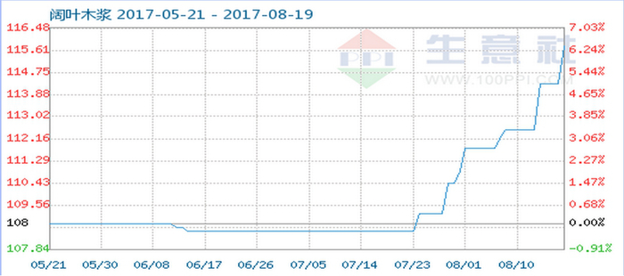 问题是,在下游需求的增加以及供给侧改革的双重作用下,造纸行业原材料价格也在不断上扬。阔叶木浆的价格在近期迎来加速上行的走势。今年上半年,进口木浆平均格价同比涨幅更是达到了24%。