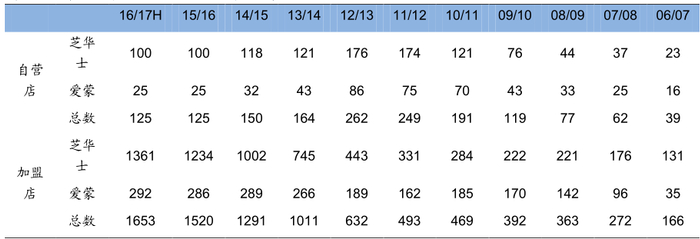 (2)中国市场渠道“自营+加盟”模式扩张。在一线城市设立自营门店,在二三线城市采用经销商加盟的方式。截止2016年9月30日,公司总共有1778家自营及分销商零售店,覆盖34个省、自治区、直辖市,508个城市。其中加盟店1653家,增加了133间,自营店125家。公司预计每年新增200间门店,主要以加盟店的形式为主,目的是渠道下沉至二三四线城市,拓展新市场。且出于对成本管控的考量,自营店的管理、人工和租金费用均较高,采取加盟商的形式扩张可节约成本。中国西南地区的消费能力增长惊喜,其中以西安、重庆、成都为主,公司将加大对重点城市的覆盖和管理,对实体店实施精细化管理,提升同店销售。自营店以独立团队为单位运营,给予充分的激励机制,提供一站式服务。