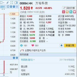小弟其实早于2个月前,已写下一篇有关万裕科技的文章,但基于该股票成交量太少,不适合散户参与,所以一直没有公布,只作为私下研究使用。