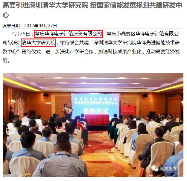 华锋股份和万裕科技的有关超级电容器的最重要的技术支持方,都来自于深圳清华大学研究院,彼此知根知底,所以一拍即合!