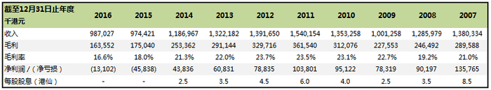 从财务数据可看出,公司自创办人于2008年离世当年急速下滑,其后虽曾短暂好转,但业绩再于2012年转差,不管收入还是毛利都逐年下滑。说明公司经营前景堪忧,尤其是这两年都是亏损经营。