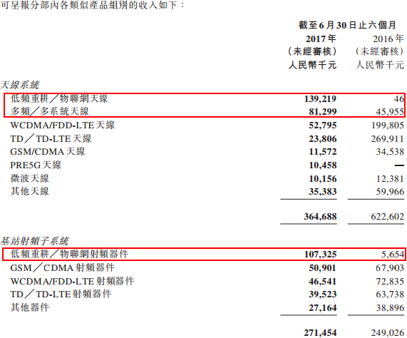 但就具体产品而言,摩比和京信通信又有不一样的地方,摩比天线系统业务中,低频重耕/物联网天线产品及多频/多系统天线产品收入表现亮眼,同比分别增长3025.5倍和76.9%,其中低频重耕/物联网天线产品在天线收入占比跃升为38.2%,占比总收入20.2%。而在基站系统中,频重耕/物联网射频器件收入增速达17.98倍。