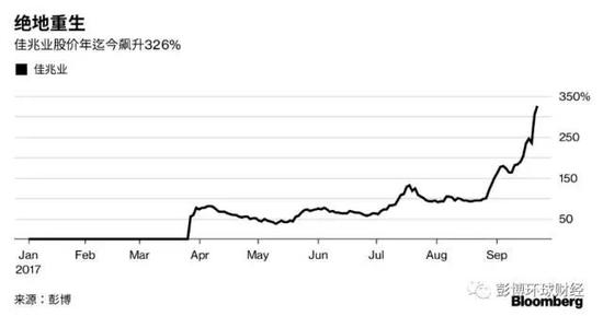 这家总部位于深圳的住宅房地产开发商的股价上周在香港飙升41%,至纪录高点,年迄今的涨幅超过300%,公司市值逾50亿美元。(受中资地产股普遍重挫影响,佳兆业周一下跌16%)。