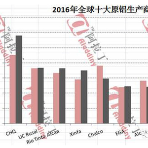 1.规模之产量:作为生产同质化产品的电解铝行业来说,比的主要就是规模和成本优势。根据阿拉丁(ALD)产量统计数据,2016年全球十大原铝生产商依次是中国宏桥、俄罗斯铝业、力拓加铝、信发集团、中国铝业、阿联酋全球铝业、美国铝业、国家电投、东方希望和挪威海德鲁。