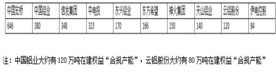2.规模之合规产能:根据我多年跟踪电解铝行业经验分析,中国前十大电解铝生厂商的合规产能如下表所示: