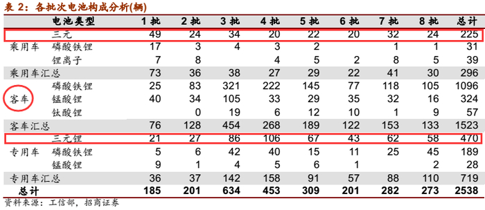 比亚迪则是生产锂电池的龙头,拥有上下游完整产业链,提供下游电动汽车生产的动力材料,亿纬锂能则是磷酸铁锂和三元材料路线并行的模式,其中磷酸铁锂主攻新能源客车,三元电池在物流车和A00级乘用车上。