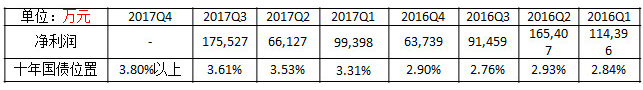 从上面可以看出,太平的净利润跟国债利率紧密相关,毕竟保险公司80%资产都是固定收益资产。但是为什么2016Q4,2017Q1和Q2净利润那么低,其中2017年上半年的利率已经开始回升了。这是因为准备金补提用的折现率是750日国债移动均线,虽然2016年四季度国债利率触底,但三年平均的话,750日国债均线的值触底就在这三个季度,所以准备金补提最厉害也是这几个季度。今年三季度、四季度还会有补提,金额已经明显减少。