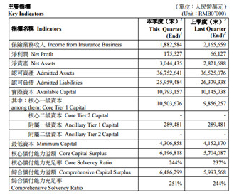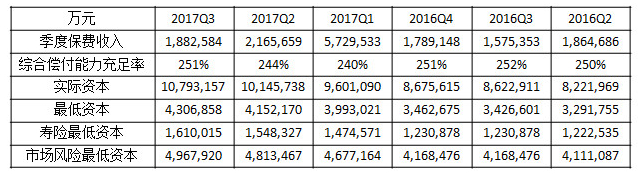 下图是中国太平人寿部分的三季度的偿付能力报告