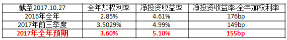 这里面需要讨论的是2017年Q1为什么偿付能力有明显下降。可能是数学上的问题,太平的偿付率一直较高。2017年Q1发展了572.95亿新保费,增加53亿的最低资本,贡献了93亿的实际资本(大约最低资本是新保费的1/10,实际资本是最低资本2倍),2017年Q2发展了216.57新保费,增加了16亿最低资本,贡献了54.5亿实际资本(大约最低资本是新保费的1/14,实际资本是最低资本3倍多),2017年Q3发展了188亿新保费,增加了15亿最低资本,贡献了65亿实际资本(大约最低资本是新保费的1/12,实际资本是最低资本4倍多)