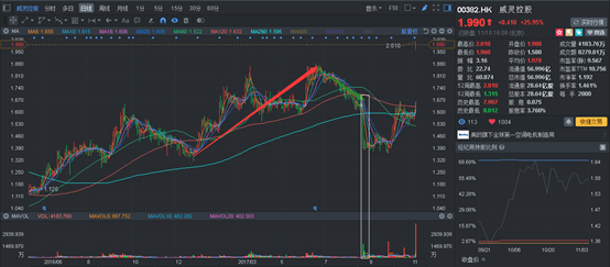 2017年11月10日注定是威灵控股(00382)不平凡的日子,这一天他迎来了近50倍急剧成交量的放大和近26%的暴力拉涨,不为别的,只为这一天是威灵控股大股东提出私有化后的第一个交易日。