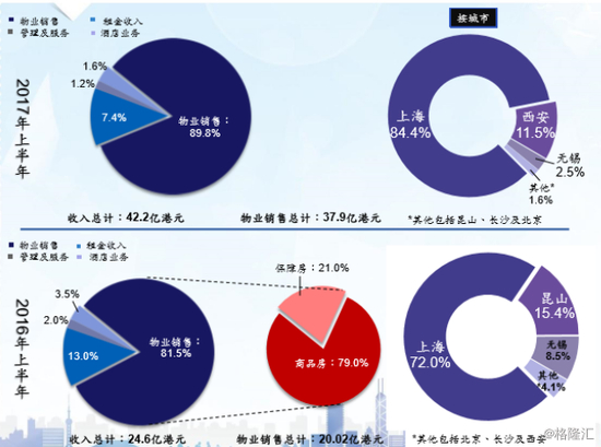 收益这一块的分布,42亿左右都是来自于物业销售,可以看到过去两年都是来自于上海的区域非常大的占比。