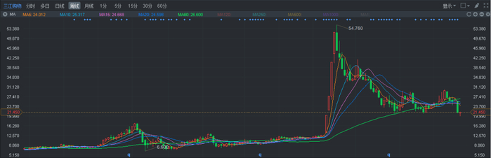 第三,三江购物股价在阿里入股后暴涨三倍有余,但其后落下“一地鸡毛”。