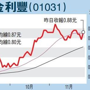 金利丰金融(01031) 8。97元 上升11。29%