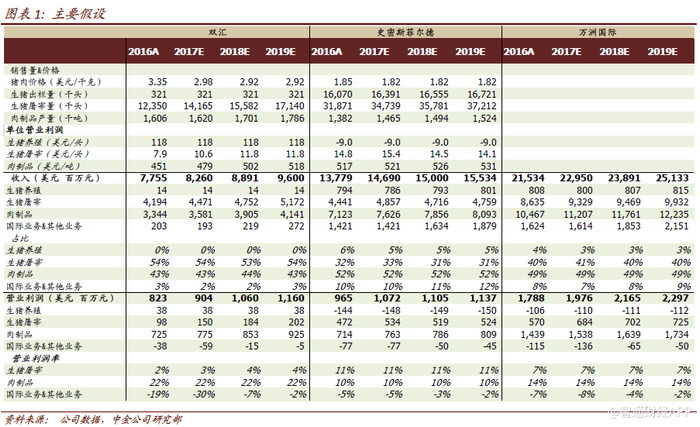 1)财务费用节约7000万美元左右,因为史密斯菲尔德因提前终止高成本债务的罚款计入17年1季度;