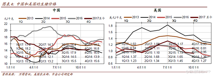 今年猪肉价格上涨以及下半年生猪和猪肉价差小幅缩小,影响了美国业务,尽管生猪养殖业务逐渐改善。往前看,中金预计生猪出栏量将上升,反映在期货市场生猪价格持平。在猪肉价格走弱的预期下生猪和猪肉价差有望回升,同时2017下半年屠宰产能增加近5%,或将抑制猪肉价格上行,稳定下游业务利润率。因此,中金预计美国业务营业利润保持稳定,海外市场整体营业利润仍有望维持同比正增长,主要由于近期收购的东欧公司预计自2018年开始放量。