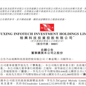 笔者查看裕兴科技近期的新闻公告后,也找不出有甚么是可以预视公司未来发展 的。所以我就把搜索的重心转至主席李强先生及行政总裁高飞先生这两个人身上。 百度一下以后,果然让我找到一些蛛丝马迹。首先大家要知道公司主席李强先生 其实本身就是裕兴科技的大股东。在 2016 年的时候,当时李强先生持有股份的 财团 Cloudrider Limited 入股裕兴科技 25%的股份成为控股股东,之后李强先生就 成了裕兴科技的主席。而高飞先生也是同期进入裕兴科技的董事会担任执行董事