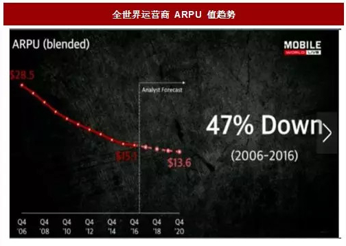 (3)DOU值。提高用户流量使用量无疑是运营商流量收入的重要增长点,随着网速加快互联网普及用户流量使用量增速加快,假如DOU值的增速超过流量单价的降速,那么无线上网收入还将持续增长。预计未来4G升级至5G,DOU值增长空间巨大,每个用户每个月使用30G或以上流量,这个并非不可能。