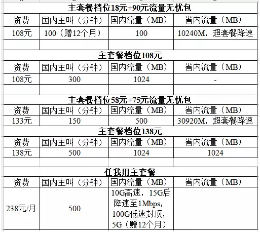 中国移动推出的主套餐是档次跨度非常大的4G飞享套餐,最新推出的不限流量套餐(如下图),用户可自行选购办理主套餐加流量套餐,而从这类套餐内容来看是经过精心设计的,既可提高低档用户档位,又不会使高档用户降费,进一步巩固ARPU值。
