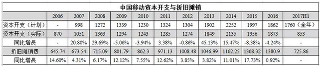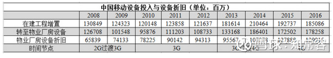 这部分的折旧计提主要是设备,占比约为95%,由2016年报数值计算折旧年限为10.1年,其会计准则直线法折旧年限为8-10年,那么设备的折旧计提最长年限。除了4G用户,中国移动还留存少数2G与3G用户,2G与3G设备还在用,折旧计提适当拉长年限比较符合逻辑。虽说中国移动未来一段时间内享受4G红利,但为响应国家“提速降费”必须更新设备,且2020年5G预商用来临,按照以往2G至3G、3G至4G的过渡情况,设备更新投入、折旧开支还将保持高位。