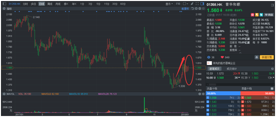 一切都如同最初设想,普华和顺股价自然开始回暖。2018年开年以来,该股回暖近10个点,成交量1112.77万股,成交额1705.67万港元,期间一度出现放量。
