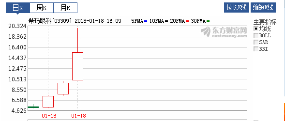 最近的港股市场,除了恒生指数创出历史新高受到市场关注外,还有一只个股也赚足了眼球。这只股票就是希玛眼科(03309,HK),上市后的四个交易日里其股价就暴涨了四倍多,堪称2018年开年后第一赚钱的股票。