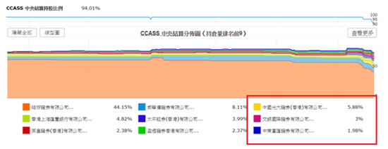 加上相信除了研究部以外,市场上也会有不少聪明的资金追踪到中船重工的增持行动,并相信长盈本来会有重大重组。这时他们就会倾向在消息公布前以不同方法抢先下注。研究部从长盈集团的中央结算系统持股纪录(CCASS)中发现,长盈集团的第一大仓结好证券的持仓正在不断下降,而这些股票持仓就是被转移到三间有中资背景的券商中,它们分别是中国光大证券、交银国际证券以及中策富汇证券。当中相信中船重工就是利用上述三间有中资背景的券商在公开市场上增持长盈集团的股票的。不过大家还需要注意一点,就是如果分别计算中船重工以及那三间券商在长盈集团的持仓增加的话,那三间券商明显是较多的。这又是否代表又有另一笔资金在增持长盈集团的股票呢?