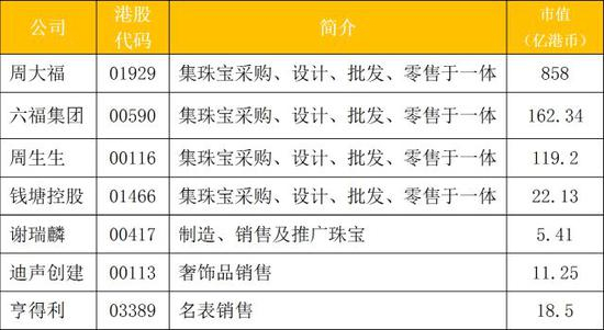 ●周大福:1929年在广州成立,2011年在香港上市,市值最大的珠宝公司,目前股价8.61,市盈率28.18