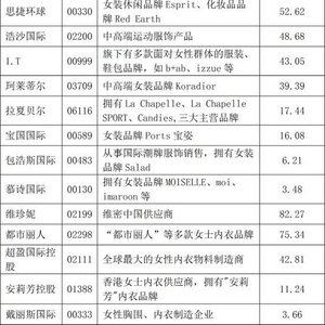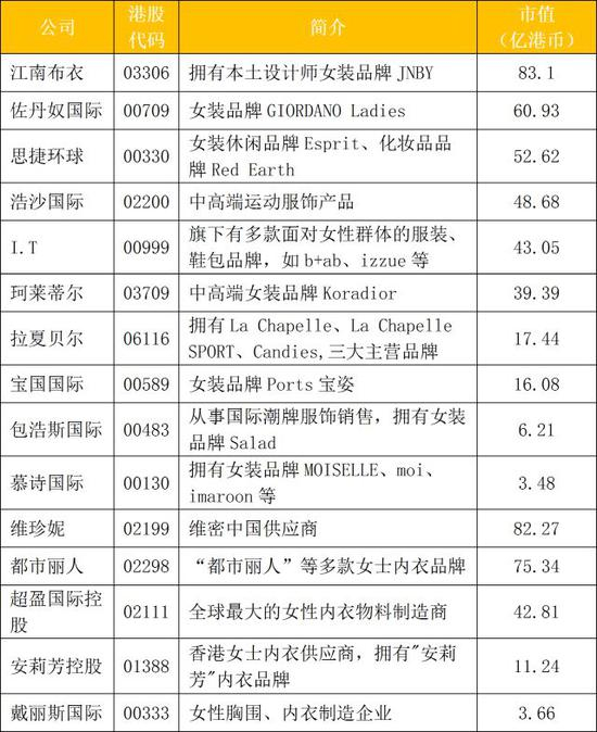 女人的衣柜里永远少一件衣服,不是没衣服是没有新衣服。港股市场里在服饰这一类别下,从事女装零售的有9家,剩下6家的业务都集中在女性内衣这块。