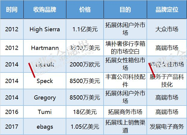 除了收购各种箱包品牌,在低中高端市场均有布局,新秀丽还收购了美国硅谷手机保护壳品牌Speck、美国箱包购物网站ebags等。
