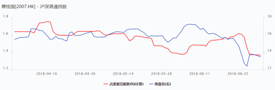 伴随着对碧桂园的不看好,内资对碧桂园也是不断减持,减持股份已经超5000万股,沪深股通持股比例也从1.62%到目前的1.37%。