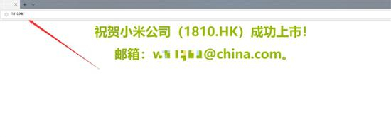 有意思的是,将小米股票代码1810.HK输入浏览器后,网站显示了一段内容,是祝贺小米上市的一句话。