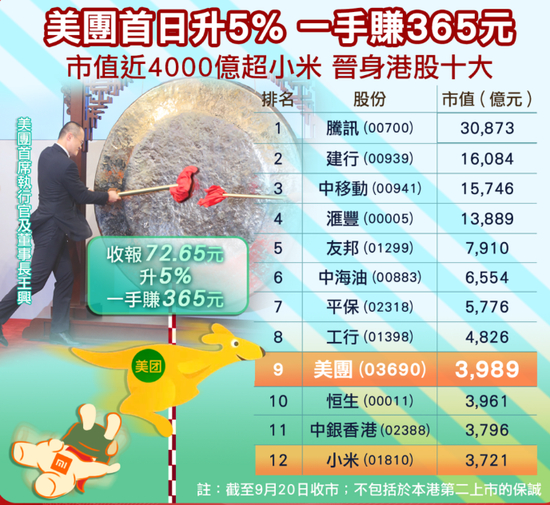 美团市值仅此BAT,跻身港股第九大市值公司