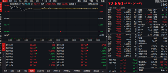 今日日美团港股上市,股价大涨5.29%,报价72.65港元。最新市值3989亿港元,超越京东、小米。目前,京东市值为3051亿港元;小米市值不足4000亿港元,为3721亿港元。美团成为仅次于BAT的中国第四大互联网公司。同时,也成为港股(以港股单一市场计算)第九大市值公司,仅此于工行的4826亿港元。