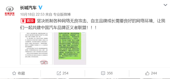 长城汽车发文遭恶意攻击 怒斥吉利”黑公关”