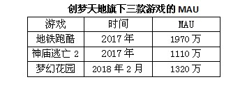 如上图所示,《地铁跑酷》于2013年9月推出,随后被创梦引入中国,但现今仍能保持1970万MAU;《神庙逃亡2》2013年1月推出,目前国内仍有个1110万的MAU。